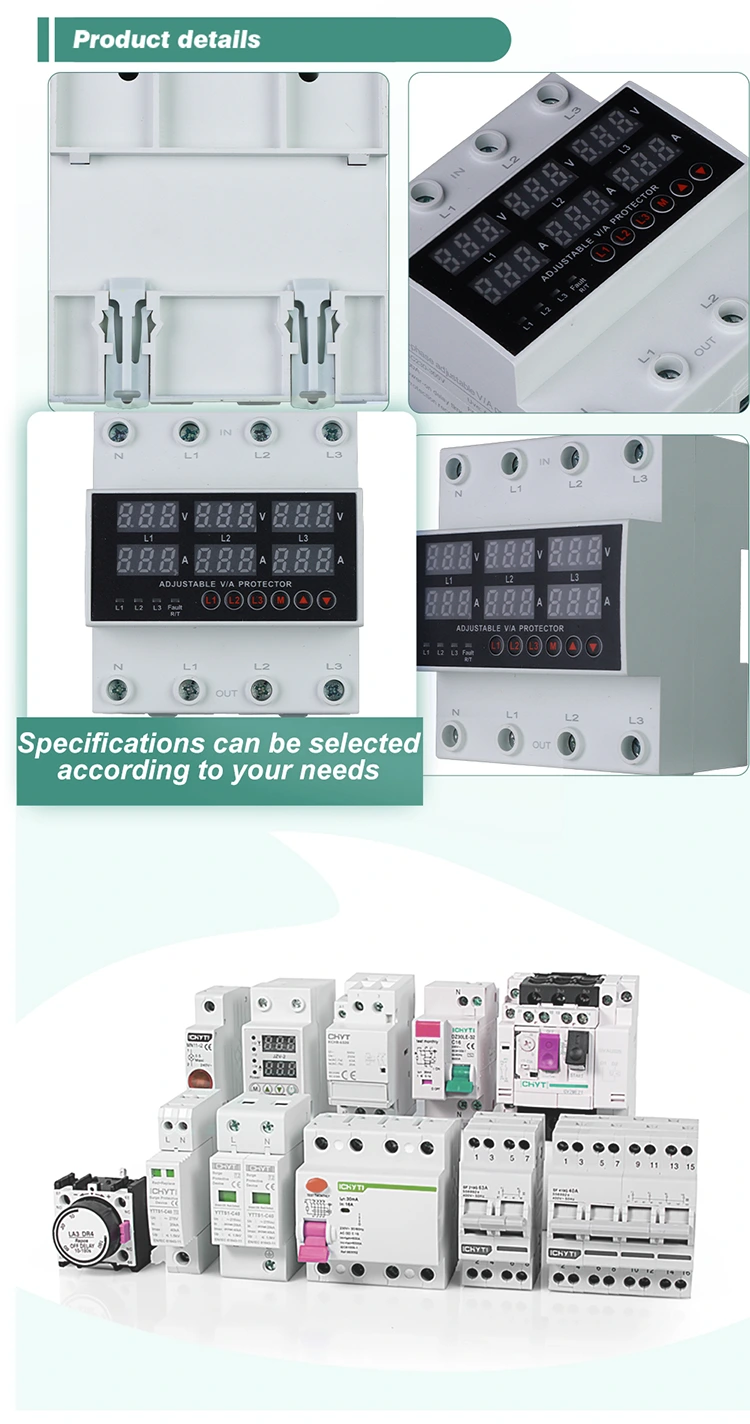 Digitális kijelzővel vannak ellátva, és importált moduláris elektronikai alkatrészek felhasználásával készülnek, így nagy megbízhatóságot és teljesítményt kínálnak. Rendellenes feszültség esetén, például túlfeszültség, alulfeszültség vagy hálózati ingadozások esetén a védőelemek automatikusan és gyorsan lekapcsolhatják az áramellátást, majd visszaállíthatják, amint a feszültség visszatér a normál értékre.
